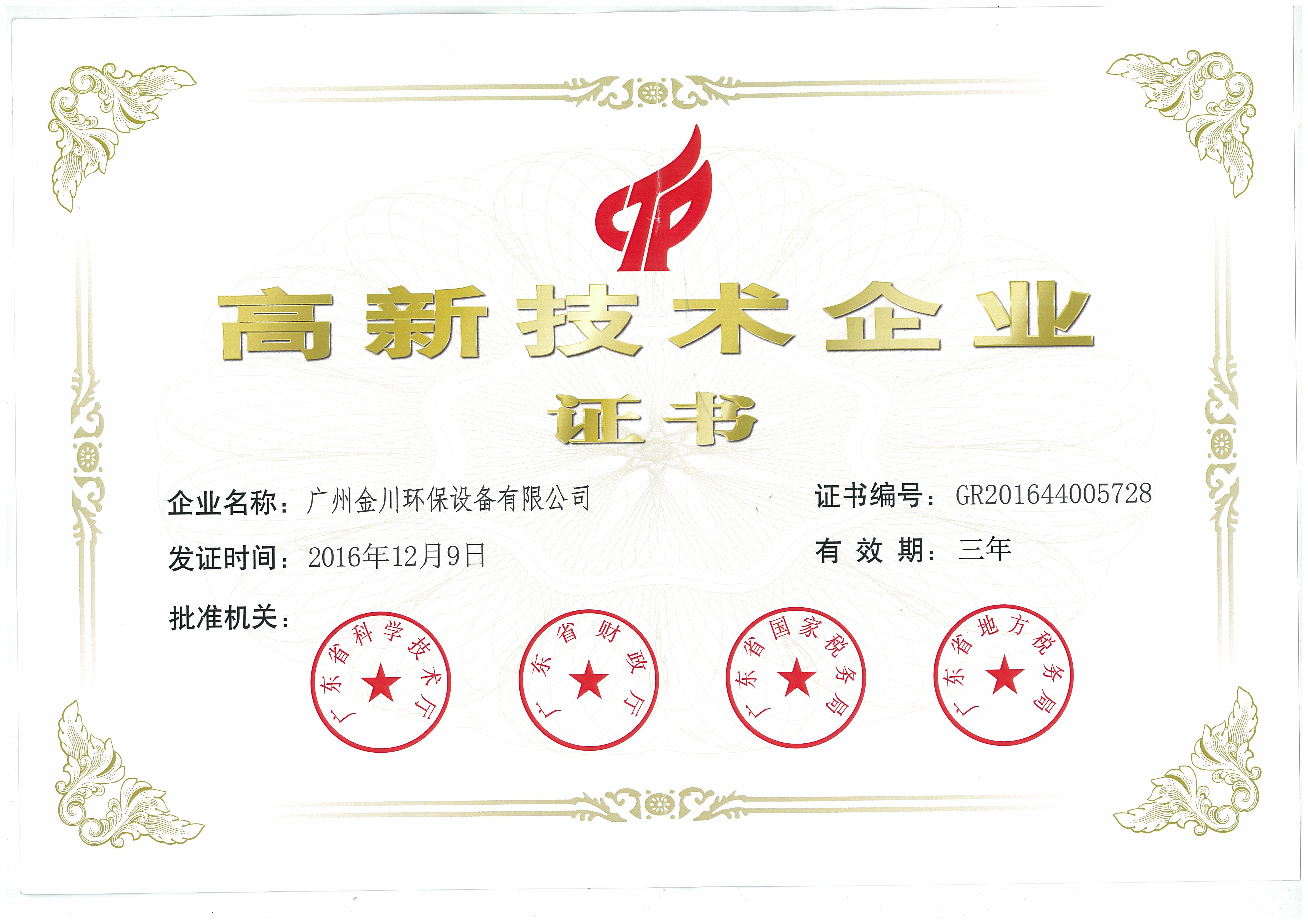 高新技術(shù)企業(yè)證書