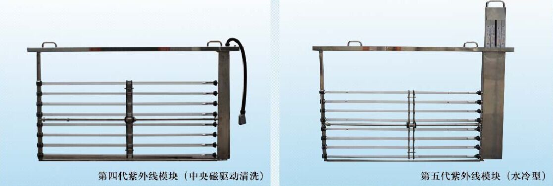 4、采用雙極粗細(xì)機(jī)械清洗設(shè)計(jì),避免紫外線系統(tǒng)長時間停運(yùn)后清洗造成套管損裂現(xiàn)象。