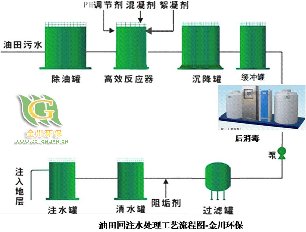5)二氧化氯處理油田回注水工藝,使處理后的水能達到油田注入水標準,并能減少污泥殘渣50%,降低了污泥對環(huán)境的污染。